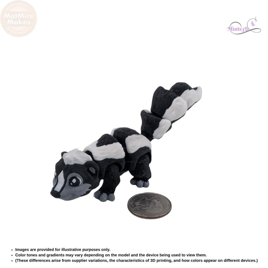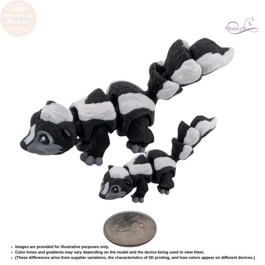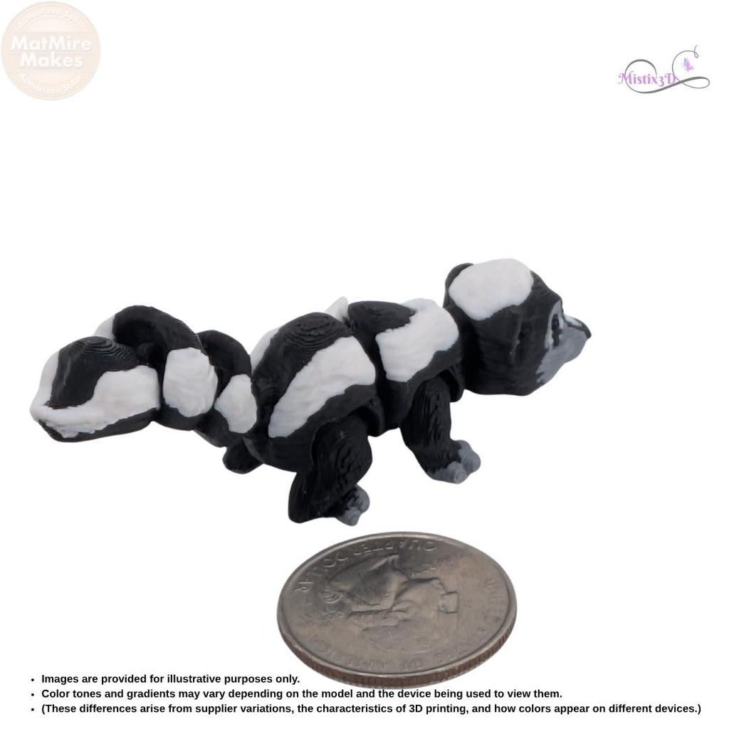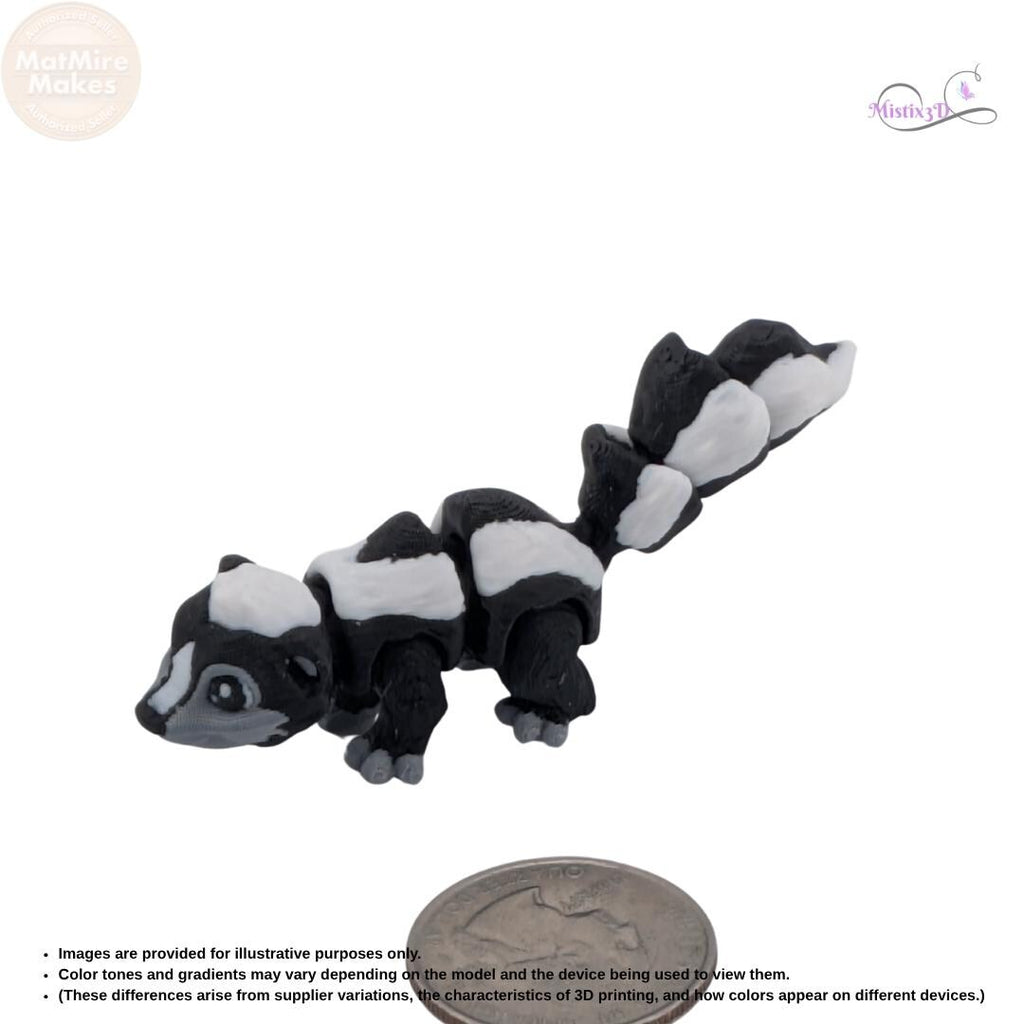 No "stink" hereβjust pure fun! β¨ This adorable Articulated Skunk is a 3D-printed marvel with a fully flexible body and a wonderfully wiggly tail. πΎ With its classic black and white markings and friendly face, this little critter makes a fantastic desk companion or sensory fidget. π€ Available in two sizes, these skunks are perfect for collectors or as a unique gift for animal lovers! π