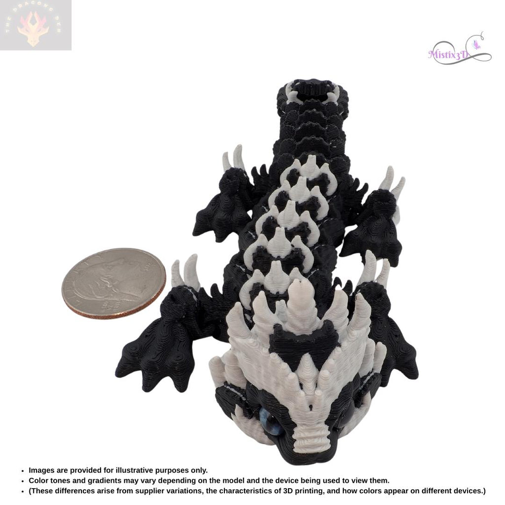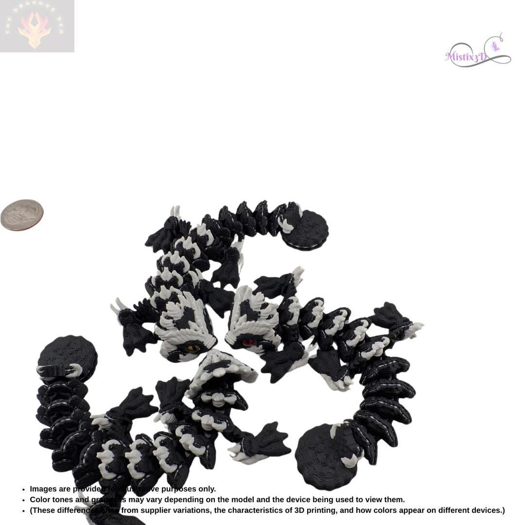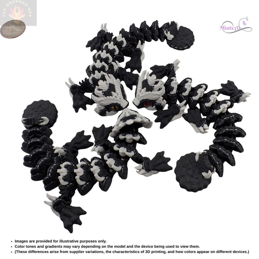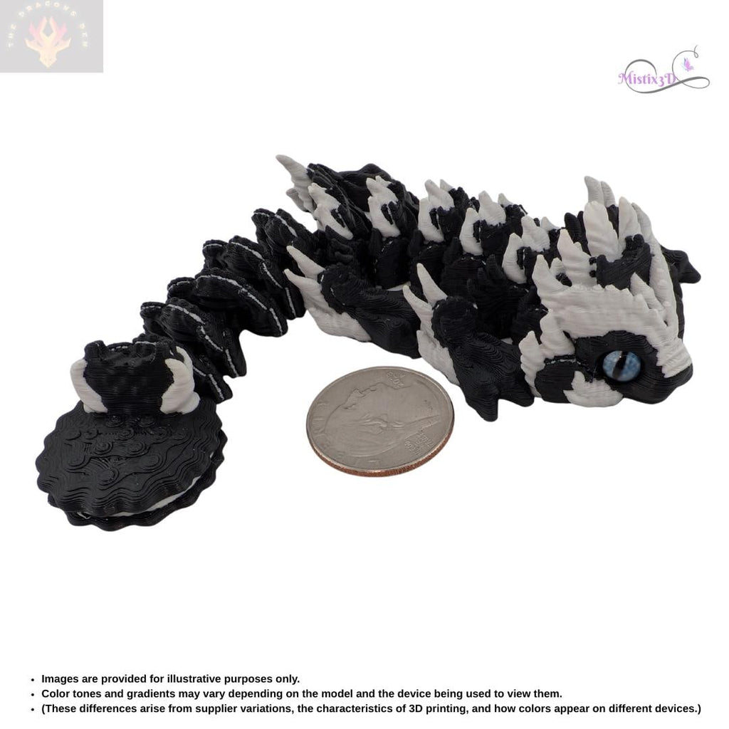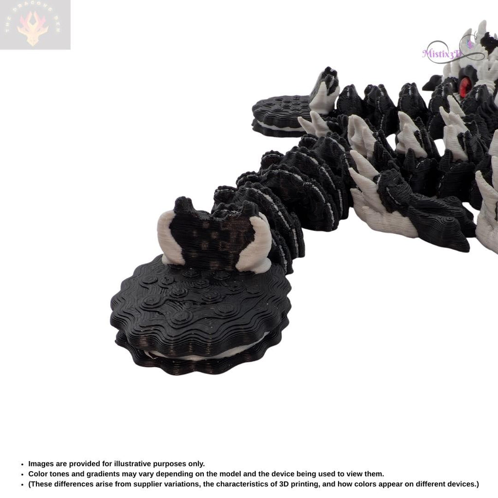 Sweeten up your workspace with this legendary treat! This "Cookies and Cream" Shadow Dragon features a striking high-contrast black and white design that looks just as delicious as your favorite snack. With its fully articulated body, this dragon can slither, coil, and pose, making it an incredible display piece or a satisfying sensory fidget toy.